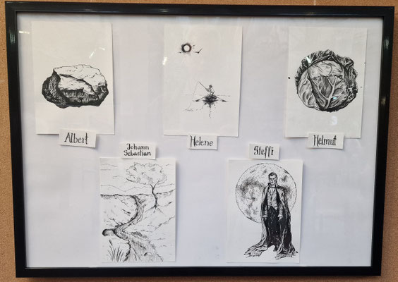 Der zweite Preis ging an Daniela Ermolenko für ihr humorvolles Tuschebild „Berühmtheiten Deutschlands“, das mit spielerischer Kreativität bekannte Persönlichkeiten neu darstellt. Jan Büllesfeld